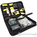 КомплектацияОбжимные клещи LY-T2008R (с фиксатором), нож LY-352 для зачистки и резки кабеля, нож KRONE LY-T2020B, кабельный тестер LY-CT011 с батарейкой 9V, по 20 коннекторов RJ11 и RJ45 | комплект №1| комплект №2| сумка
