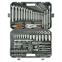 Комплектация1/4 дюйма:Головка торцевая 6гр. 4, 4.5, 5, 5.5, 6, 7, 8, 9, 10, 11, 12, 13, 14Головка торцевая удлиненная 6гр. 6, 7, 8, 9, 10, 11, 12, 13Трещоточная рукоятка 1/4 дюйма, 72 зубаВороток Т-образный 1/4 дюймаОтвёрточная рукоятка 1/4 дюйма - 1/4 дюймаУдлинитель 50мм, 75мм, 100мм, 150ммГоловка торцевая TORX E4, E5, E6, E7, E8Карданный шарнир 1/4 дюймаУдлинитель гибкий 145ммГ-образный шестигранный ключ 1.5мм, 2мм, 2.5ммГ-образный шестигранный удлинённый ключ 3, 4, 5, 6, 7, 8 ммБиты в держателе 1/4 дюйма TX8, TX 10, TX 15, TX 20, TX 25, TX 27, TX 30, H3, H4, H5, H6, SL 4, SL 5.5, SL 6.5, PH 1, PH 2, PZ 1, PZ 21/2 дюйма:Биты 8мм H7, H8, H10, H12, H14, SL 8, SL 10, SL 12, PH 3, PH 4, PZ 3, PZ 4, TX 40, TX 45, TX 50, TX 55, TX 60Головка торцевая 6гр. 8, 10, 11, 12, 13, 14, 15, 16, 17, 18, 19, 21, 22, 24, 27, 30, 32Головка торцевая удлиненная 6гр. 14, 15, 17, 19, 22Головка свечная 16мм, 21ммТрещоточная рукоятка 1/2 дюйма, 72 зубаДержатель для бит 1/2 дюйма — 8ммУдлинитель 125мм, 250ммАдаптор для Т-образного воротка 1/2 дюймаКарданный шарнир 1/2 дюймаГоловка торцевая TORX E10, E11, E12, E14, E16, E18, E20, E24Ключ комбинированный 6, 7, 8, 9, 10, 11, 12, 13, 14, 15, 16, 17, 19, 22 ммЗажим ручной (Пинцы) 250ммКлюч шарнирный 8х10, 12х13, 14х15, 17х19 ммПлоскогубцы комбинированные 150мм
