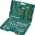 Набор: 132 шт • Ключи: комбинированные, разрезные, шестигранные • Головки: 6-ти гранные головки, головки E-профиль, свечные • Ключей-трещоток: 2 шт • Хранение: пластиковый кейс
