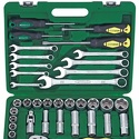 Головки торцевые подробно1/2": 10, 11, 12, 13, 14, 15, 16, 17, 18, 19, 20, 21, 22, 23, 24, 27, 30, 32 мм; длинные 1/2": 10, 13, 17, 19 мм; головки свечные 1/2": 16, 21 мм; трещетка 1/2": 45 зубов; удлинитель 1/2": 125, 250 мм; скользящий переходник 1/2"