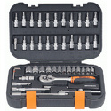 Набор: 46 шт • Ключи: шестигранные • Головки: 6-ти гранные головки • Ключей-трещоток: 1 шт • Хранение: пластиковый кейс