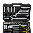 Комплектация- 4 шт.: 1/2" Головки торцевые длинные 6-гранные Super Lock: 10, 13, 17, 19 мм- 18 шт.: 1/2" Головки торцевые 6-гранные Super Lock: 10, 11, 12, 13, 14, 15, 16, 17, 18, 19, 20, 21, 22, 23, 24, 27, 30, 32 мм- 2 шт.: 1/2" Головки свечные магнитные: 16, 21 мм- 1 шт.: 1/2" Трещотка (ключ трещоточный с быстрым сбросом): 45 зубов- 2 шт.: 1/2" Удлинитель: 125, 250 мм- 1 шт.: 1/2" Переходник скользящий- 9 шт.: Ключи комбинированные: 8, 10, 11, 12, 13, 14, 17, 19, 22 мм- 4 шт.: Отвертки:SL (шлиц): 6,5х100, 8х75Ph (крест): 2х75, 2х100- 1 шт.: 1/2" Кардан шарнирный