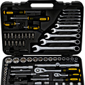 Комплектация10 шт.: 1/4" Головки торцевые 6-гранные Super Lock: 5, 6, 7, 8, 9, 10, 11, 12, 13, 14мм4 шт.: 1/4" Головки торцевые длинные 6-гранные Super Lock: 7, 8, 10, 12 мм1 шт.: 1/2" Трещотка (ключ трещоточный с быстрым сбросом): 45 зубов2 шт.: 1/4" Удлинитель: 50, 100 мм1 шт.: 1/4" Вороток Т-образный: 110 мм1 шт.: 1/4" Гибкий удлинитель: 150 мм1 шт.: 1/4" Кардан шарнирный1 шт.: 1/4" Отвертка с присоединительным квадратом16 шт.: 1/4" Биты:TORX (звёздочка): T20, Т27, T25, T30Ph (крест): 1, 2, 2Pz (позидрайв): 1, 2, 2Slot (шлиц): 4, 5.5, 7HEX (шестигранник): 4, 5, 61 шт.: 1/4" Адаптер для бит1 шт.: 1/4" Переходник для электроинструмента14 шт.: 1/2" Головки торцевые 6-гранные Super Lock: 10, 12, 13, 14, 15, 17, 18, 19, 21, 22, 24, 27, 30, 32 мм4 шт.: 1/2" Головки торцевые длинные 6-гранные Super Lock: 14, 15, 17, 19 мм2 шт.: 1/2" Головки свечные магнитные: 16, 21 мм1 шт.: 1/2" Трещотка (ключ трещоточный с быстрым сбросом): 45 зубов2 шт.: 1/2" Удлинитель: 125, 250 мм1 шт.: 1/2" Скользящий переходник1 шт.: 1/2" Кардан шарнирный1 шт.: 5/16” Адаптер для бит15 шт.: 5/16” Биты:TORX (звёздочка): Т40, T45, T50, T55Ph (крест): 3, 4Pz (позидрайв): 3, 4Slot (шлиц): 8, 10, 12HEX (шестигранник): 8, 9, 10, 1210 шт.: Ключи комбинированные: 7, 8, 10, 11, 12, 13, 14, 17, 19, 22 мм1 шт.: Ручка магнитная телескопическая4 шт.: Отвертки:Slot (шлиц): 6х38, 6.5х100 ммPh (крест): 2х100, 2х38 мм