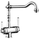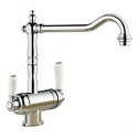 Классический дизайн элементов управления, подключение фильтра Отдельные рычаги управления для фильтрованной и нефильтрованной воды Один совмещенный излив для питьевой и обычной воды с разделением рассекателя