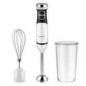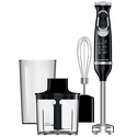 Тип: погружной (ручной) блендер • Мощность: 800 Вт • Скорости: плавная регулировка, импульсный • Насадки: ножка, венчики, нож для измельчителя