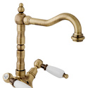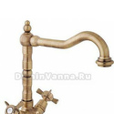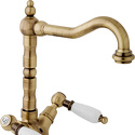 Назначение: для умывальника • Конструкция: двухрычажный • Монтаж: горизонтальный • Материал: латунь, покрытие - бронза • Монтажные отверстия: 1 отверстие • Форма излива: традиционная • Душевая лейка в комплекте: нет • Донный клапан в комплекте: есть