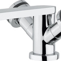 Назначение: для умывальника • Конструкция: двухрычажный • Монтаж: горизонтальный • Материал: латунь, покрытие - хром • Подводка: гибкая • Монтажные отверстия: 1 отверстие • Форма излива: традиционная • Душевая лейка в комплекте: нет • Аэратор: есть • Донный клапан в комплекте: есть
