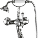 Назначение: ванна+душ • Конструкция: однорычажный • Монтаж: вертикальный • Материал: покрытие - хром • Подводка: жесткая • Монтажные отверстия: 2 отверстия • Форма излива: традиционная • Душевая лейка в комплекте: есть • Держатель для душевой лейки: на смесителе • Донный клапан в комплекте: есть