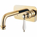 Назначение: для умывальника • Конструкция: однорычажный • Монтаж: вертикальный • Клапан: керамический • Материал: латунь, покрытие - золото • Подводка: жесткая • Монтажные отверстия: 2 отверстия • Форма излива: традиционная • Душевая лейка в комплекте: нет • Аэратор: есть • Донный клапан в комплекте: есть