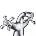 Назначение: универсальный • Конструкция: двухрычажный • Монтаж: вертикальный • Клапан: керамический • Материал: латунь, покрытие - хром • Подводка: жесткая • Монтажные отверстия: 2 отверстия • Форма излива: традиционная • Душевая лейка в комплекте: есть • Аэратор: есть • Эксцентрики в комплекте: есть