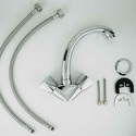 Назначение: для умывальника • Конструкция: двухрычажный • Монтаж: горизонтальный • Клапан: керамический • Материал: латунь, покрытие - хром • Подводка: гибкая • Монтажные отверстия: 1 отверстие • Форма излива: традиционная • Душевая лейка в комплекте: нет • Аэратор: есть • Донный клапан в комплекте: есть