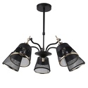 Люстра на штанге стиля модерн для кабинета, прихожей или спальни имеет размеры 660x460 мм. Арматура светильника окрашена в черный цвет. Лампы в комплекте - отсутствуют. В светильнике применяются лампы накаливания или светодиодная LED-лампа. Цвет плафонов - черный, с матовой поверхностью. Материал плафонов - металл. Класс электробезопасности - I, степень пылевлагозащиты (IP) - 20. Максимальная мощность лампы (Вт) - 40. Светильник размещается на потолоке.