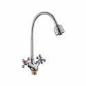 Назначение: кухонный • Конструкция: двухрычажный • Монтаж: горизонтальный • Материал: латунь, покрытие - хром • Подводка: гибкая • Монтажные отверстия: 1 отверстие • Форма излива: традиционная • Душевая лейка в комплекте: нет • Аэратор: есть • Донный клапан в комплекте: есть