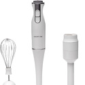 Поэтому компания выпускает широкий ассортимент наборов сменных насадок, продаваемых вместе с погружным блендером. Из-за этого прибор выполняет все функции стационарного устройства, и в зависимости от мощности справляется почти со всеми видами продуктов.