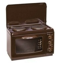 Тип конфорок: электрические • Тип духовки: электрическая • Размеры (ШxВxГ): 550x400x370 мм • Цвет: коричневый • Электрические конфорки: всего - 2 • Объем духовки: 18 л • Максимальная температура духовки: 260 °С • Гриль: есть, электрический • Очистка духовки: традиционная • Подсветка: есть • Количество стекол дверцы духовки: 2 • Тип управления: механическое • Переключатели: поворотные