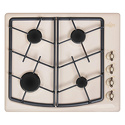 Поверхность: варочная панель • Тип поверхности: газовая • Рабочая поверхность: эмаль • Число конфорок: 4 • Установка: независимая • Газовые конфорки: всего - 4 • Газ-контроль конфорок: есть • Тип управления: механическое • Переключатели: поворотные • Электроподжиг: есть, автоматический • Размеры: 590x510x95 мм • Размер ниши для встраивания: 560x486 мм • Цвет: панель - кремовый