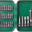 Комплектация- Биты 25мм:SL - 5, 6, 7ммPZ - 1, 2, 3TX - 10, 15, 20, 25, 30PH - 1, 2, 3H - 3, 4, 5- Биты 50мм:PH - 2PZ -2- Держатель для бит