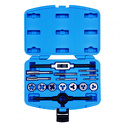 КомплектацияМетчики: M3x0.5, M4x0.7, M5x0.8, M6x1.0, M8x1.25, M10x1.5, M12x1.75; Плашки Ø 25 мм: M3x0.5, M4x0.7, M5x0.8, M6x1.0, M8x1.25, M10x1.5, M12x1.75; Метчикодержатель Т-типа: М3-М12; Плашкодержатель: Ø 25 мм