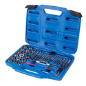 КомплектацияМетчики: M3x0.5, M3x0.6, M4x0.7, M4x0.75, M5x0.8, M5x0.9, M6x0.75, M6x1.0, M7x0.75, M7x1.0, M8x1.0, M8x1.25, M10x1.25, M10x1.5, M12x1.5, M12x1.75, 1/8NPT27; Плашки Ø 25 мм: M3x0.5, M3x0.6, M4x0.7, M4x0.75, M5x0.8, M5x0.9, M6x0.75, M6x1.0, M7x0.75, M7x1.0, M8x1.0, M8x1.25, M10x1.25, M10x1.5, M12x1.5, M12x1.75, 1/8NPT27; Метчикодержатель Т-типа: М3-М12; Метчикодержатель цанговый: М3-М6; Плашкодержатель: Ø 25 мм; Отвёртка: 3.0 x 45 мм; Резьбомер веерный: 0.5, 0.6, 0.7, 0.75, 0.8, 0.9, 1.0, 1.25, 1.5, 1.75, 27 NPT, 28 NPT
