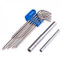 КомплектацияКлючи TORX T10, T15, T20, T25, T27, T30, T40, T45, T50; Рычажный удлинитель 150 мм, Ø 8x10 мм; Рычажный удлинитель 110 мм, Ø 5x6 мм; Пластиковый держатель