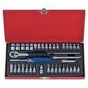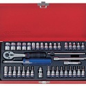 Комплектация- Трещотка 1/4", 140 мм, 24 зубца, флажковая, фиксатор KING TONY 2779-55G;- Отвертка вороток 1/4" KING TONY 2178AE;- Вороток 1/4", 115 мм, скользящий KING TONY 2571-45;- Кардан 1/4" KING TONY 2792;- Удлинитель 1/4", 50 мм KING TONY 2221-02;- Удлинитель 1/4", 100 мм KING TONY 2221-04;- Торцевые головки KING TONY серии 2335M, размеры: 4, 4.5, 5, 5.5, 6, 7, 8, 9, 10, 11, 12, 13 мм;- Торцевые головки KING TONY TORX Е-стандарт серии 2375M, размеры: E4, E5, E6, E7, E8;- Насадки (биты) торцевые 1/4", TORX, KING TONY серии 2033M: T8, T9, T10, T15, T20, T25, T27, T30, T40;- Насадки (биты) торцевые 1/4", HEX, KING TONY серии 2035: 3, 4, 5, 6, 7, 8, 10 мм.- Кейс