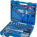 Набор: 87 шт • Ключи: комбинированные, шестигранные, Torx, инбусовые • Головки: 6-ти гранные головки, свечные • Ключей-трещоток: 2 шт • Хранение: пластиковый кейс