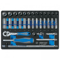 Комплектация- Головки торцевые стандартные 6-гранные 2335M 4, 4.5, 5, 5.5, 6, 7, 8, 9, 10, 11, 12, 13, 14 мм- Головки торцевые глубокие 6-гранные 2235M 4, 4.5, 5, 5.5, 6, 7, 8, 9, 10, 11, 12, 13, 14 мм- Трещотка флажковая 2771-55G 140 мм, 24 зубца- Вороток, скользящий 2571-45 115 мм- Держатель вставок (бит) 1/4" 2142 - Отвертка-вороток 2178DF 150 мм- Удлинители 2221 50, 100, 150 мм- Кардан 2792 36 мм- Ложемент – EVA, 186 × 375 мм (№8)