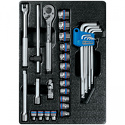 Комплектация- Головка торцевая стандартная шестигранная 3/8", KING TONY серии 3335M: 6, 7, 8, 9, 10, 11, 12, 13, 14, 15, 16, 17, 19, 20, 21, 22;- Трещотка 3/8", 200 мм, 32 зубца, флажковая KING TONY 3769-08F;- Вороток 3/8", 200 мм, скользящий KING TONY 3571-08;- Удлинитель 3/8", KING TONY серии 3221: 75, 150;- Вороток 3/8", 250 мм, с шарниром KING TONY 3452-10F;- Кардан 3/8" KING TONY 3792.- Ложемент