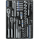 Комплектация- Головка торцевая стандартная шестигранная 1/4", KING TONY серии 2335M: 4, 4.5, 5, 5.5, 6, 7, 8, 9, 10, 11, 12, 13- Головка торцевая стандартная шестигранная 1/4", дюймовая KING TONY серии 2335S: 1/4, 3/8, 1/2- Головка торцевая глубокая шестигранная 3/8", KING TONY серии 3235M: 8, 10, 12, 14, 17- Головка торцевая стандартная шестигранная 3/8", KING TONY серии 3335M: 6, 7, 8, 9, 10, 11, 12, 13, 14, 15, 16, 17, 18, 19, 21, 22- Головка торцевая TORX Е-стандарт 1/4", L = 24 мм KING TONY серии 2375M: E4, E5, E6, E7, E8- Головка торцевая TORX Е-стандарт 3/8", L = 28 мм KING TONY серии 3375M: E10, E12, E14, E16, E18- Насадка (бита) торцевая 3/8", TORX, L = 50 мм KING TONY серии 3027M: T40, T45, T50- Насадка (бита) торцевая 1/4", TORX, L = 37 мм KING TONY серии 2037M: T10, T15, T20, T25, T27, T30- Насадка (бита) торцевая 1/4", TORX, L = 37 мм KING TONY серии 2033M: T20, T25, T30, T40- Головка свечная шестигранная 1/2", L = 70 мм, резиновый фиксатор KING TONY серии 4635R: 16, 21- Кардан KING TONY: 1/4, 3/8- Трещотка 1/4", 140 мм, 24 зубца, флажковая, фиксатор KING TONY 2769-55F- Трещотка 3/8", 200 мм, 32 зубца, флажковая KING TONY 3769-08F- Трещотка с шарниром 3/8" 290 мм KINGTONY 3789-11F- Вороток 1/4", 115 мм, скользящий KING TONY 2571-45- Вороток 3/8", 200 мм, скользящий KING TONY 3571-08- Вороток 1/4", 125 мм, с шарниром KING TONY 2452-05F- Вороток 3/8", 250 мм, с шарниром KING TONY 3452-10F- Удлинитель 1/4", KING TONY серии 2221: 50, 100- Удлинитель 3/8", KING TONY серии 3221: 40, 75, 150.- Ложемент