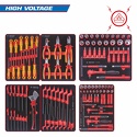 КомплектацияОтвертки диэлектрические Phillips PH0х75, PH1х100, PH2х100, PH3х150 Отвертки диэлектрические Slotted: 3х75, 4х100, 8х175, 3.5х100, 5.5х125, 6.5х150 Отвертки диэлектрические: Square 1х125, 2х150 Бокорезы диэлектрические, 167 ммПассатижи тонконосые диэлектрические, 210 ммСтриппер диэлектрический, 160 ммПассатижи комбинированные диэлектрические, 185 ммПассатижи тонконосые, загнутые, диэлектрические 200 ммКабелерез диэлектрический, 214 мм Ключи рожковые диэлектрические: 8, 9, 10, 12, 13, 14, 16, 17, 18, 19, 21, 22, 24 ммКлюч разводной диэлектрический, 310 мм Ключи накидные диэлектрические: 7, 8, 9, 10, 11, 12, 13, 14, 16, 17, 18, 19, 21, 22, 24Головки торцевые диэлектрические короткие 6-гранные 1/2": 8, 9, 10, 11, 12, 13, 14, 15, 16, 17, 18, 19, 21, 22, 24, 27, 30, 32 ммТрещотка флажковая с кнопкой 1/2" 24 зубца, 250 ммВороток Т-образный 1/2" 200 мм Удлинители диэлектрические 1/2" 125, 250 мм Насадки (биты) торцевые диэлектрические 1/2", длина 75 мм HEX: H4, H5, H6, H8, H10Насадки (биты) торцевые диэлектрические 1/2", длина 120 мм HEX: H4, H5, H6, H8, H10Головки торцевые диэлектрические короткие 6-гранные 3/8": 10, 11, 12, 13, 14, 15, 16, 17, 18, 19 мм Головки торцевые диэлектрические глубокие 6-гранные 3/8": 8, 10, 12, 14 мм Трещотка флажковая с кнопкой 3/8" 24 зубца, 200 мм Вороток Т-образный 3/8" 200 мм Удлинители 3/8" – 150, 250 мм Головки торцевые диэлектрические короткие 6-гранные 1/4": 5, 6, 7, 8, 9, 10, 11, 12, 13, 14 мм Трещотка флажковая с кнопкой 1/4" 24 зубца, 150 мм Вороток Т-образный 1/4" 125 ммУдлинители 1/4" 100, 150 мм Насадки (биты) торцевые диэлектрические 3/8", длина 65 мм HEX: H8, H10 Насадки (биты) торцевые диэлектрические 1/4", длина 54 мм HEX: H3, H4, H5, H6