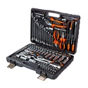 Набор инструмента Квалитет 132 предмета является самым внушительным и полным из представленной линейки. Такой комплект должен быть у каждого профессионала своего дела.8 шт – 1/4" Головки удлиненные: 6, 7, 8, 9, 10, 11, 12, 13 мм5 шт – 1/4" Головки д/внешнего TORX: Е4, Е5, Е6,Е7, Е8 мм13 шт – 1/4" Головки : 4, 4.5, 5, 5.5, 6, 7, 8, 9, 10, 11, 12, 13, 14 мм1 шт – 1/4" Трещотка 72 зубца с быстрым сбросом2 шт – 1/4" Удлинители: 50, 100 мм1 шт – 1/4" Гибкий удлинитель 150 мм1 шт – 1/4" Вороток Т-образный 115 мм1 шт – 1/4" Карданный шарнир1 шт – 1/4" Отвертка с присоединительным квадратом18 шт – Биты с вставками 1/4":TORX: Т8, T10, T15, T20, T25, T27, T30Ph: 1, 2Pz: 1, 2Шлицевые: 4, 5.5, 6.5Шестигранные: 3, 4, 5, 617 шт – 1/2" Головки: 10, 11, 12, 13, 14, 15, 16, 17, 18, 19, 20, 21, 22, 24, 27, 30, 32 мм5 шт – 1/2" Головки удлиненные: 14, 15, 17, 19, 22 мм8 шт – 1/2" Головки д/внешнего TORX: Е10, Е11, Е12, Е14, Е16, Е18, Е20, Е22мм2 шт – 1/2" Свечные головки: 16, 21 мм1 шт – 1/2" Трещотка 72 зубца с быстрым сбросом 2 шт – 1/2" Удлинители: 125, 250 мм1 шт – 1/2" Клещи переставные 238 мм1 шт – 1/2" Скользящий переходник1 шт – Адаптер для бит на 5/16"16 шт – 5/16" Биты:Шестигранные: 8, 10, 12, 14Шлицевые: 8, 10, 12Ph: 3, 4Pz: 3, 4TORX: T40, T45, T50, T55, T601 шт – 1/2" Карданный шарнир14 шт – Ключи комбинированные: 6, 7, 8, 9, 10, 11, 12, 13, 14, 15, 16, 17, 19, 22 мм4 шт – Шестигранные ключи: 1.27, 1.5, 2, 2.51 шт – Пассатижи 150 мм1 шт – Бокорезы 150 мм4 шт – Отвертки:Шлицевые: 6.5х100, 8х150Крестовые: 1х75, 2х1001 шт – Магнитная телескопическая ручка1 шт – АвтотестерУсиленный кейс