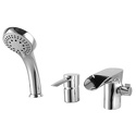 Назначение: ванна+душ • Конструкция: однорычажный • Монтаж: горизонтальный • Клапан: керамический • Материал: покрытие - хром • Монтажные отверстия: 3 отверстия • Форма излива: каскадная • Душевая лейка в комплекте: есть • Донный клапан в комплекте: есть
