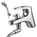 Высота излива - 66, Комплектация - Держатель душевой лейки, душевой шланг, ручной душ, Встраиваемый - Нет, Тип - Однозахватный, Поворотный излив - Нет, Тип подводки - Гибкая, Присоединительный размер - 1\2", Аэратор - Есть, Назначение - Для умывальника, Количество монтажных отверстий - 1, Донный клапан - Нет, Форма излива - Традиционная, Материал корпуса - Латунь, Термостат - Нет, Покрытие - Хром, Максимальный расход воды - 23, Глубина - 12.8, Цвет - Серебристый, Длина излива - 113, Высота - 15.1