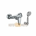 Комплектация - Держатель душевой лейки, душевой шланг, ручной душ, Покрытие - Хром, Тип - Однозахватный, Термостат - Нет, Материал корпуса - Латунь, Назначение - Для ванны и душа, Присоединительный размер - 1\2", Форма излива - Отсутствует, Высота - 10.3, Встраиваемый - Нет, Поворотный излив - Нет, S-образные эксцентрики - Есть, Глубина - 12.5, Количество монтажных отверстий - 2, Тип подводки - Жесткая, Цвет - Серебристый, Донный клапан - Нет