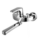 Назначение: ванна+душ • Конструкция: однорычажный • Монтаж: вертикальный • Клапан: керамический • Подводка: жесткая • Монтажные отверстия: 2 отверстия • Форма излива: традиционная • Душевая лейка в комплекте: нет • Аэратор: есть • Эксцентрики в комплекте: есть • Донный клапан в комплекте: есть