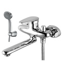 Термостат - Нет, Количество монтажных отверстий - 2, Тип - Однозахватный, Материал корпуса - Латунь, Встраиваемый - Нет, Покрытие - Хром, Назначение - Для ванны и душа, Присоединительный размер - 1\2", Комплектация - Держатель душевой лейки, ручной душ, Тип подводки - Жесткая, Форма излива - Традиционная, Аэратор - Есть, S-образные эксцентрики - Есть, Поворотный излив - Нет, Глубина - 25.9, Длина излива - 234, Цвет - Серебристый, Донный клапан - Нет