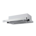 конструкция телескопическая • монтаж для встраивания • ширина 60 см • управление механическое/слайдерное • производительность вытяжки 500 м³/ч • производительность мотора 550 м³/ч • цвет нержавеющая сталь