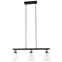 Подвесной светильник стиля модерн для гостиной, кабинета, кухни, прихожей или спальни имеет размеры 750x145x1700 мм. Арматура светильника окрашена в черный цвет. Лампы в комплекте - отсутствуют. В светильнике применяются лампы накаливания или светодиодная LED-лампа. Цвет плафонов - белый, с матовой поверхностью. Материал плафонов - стекло. Класс электробезопасности - I, степень пылевлагозащиты (IP) - 20. Максимальная мощность лампы (Вт) - 40. Светильник размещается на потолоке.
