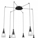 Подвесной светильник стиля модерн для гостиной, кабинета, прихожей или спальни имеет размеры 300x1500 мм. Арматура светильника окрашена в черный цвет. Лампы в комплекте - отсутствуют. В светильнике применяются галогеновая лампа или светодиодная LED-лампа. Цвет плафонов - неокрашенный, черный, с матовой, прозрачной поверхностью. Материал плафонов - металл, стекло. Класс электробезопасности - I, степень пылевлагозащиты (IP) - 20. Максимальная мощность лампы (Вт) - 40. Светильник размещается на потолоке.