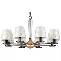 Подвесная люстра стиля классика для гостиная имеет размеры 800x1250 мм. Арматура светильника окрашена в золотой и черный цвет. Лампы в комплекте - отсутствуют. В светильнике применяются лампы накаливания или светодиодная LED-лампа. Цвет плафонов - светло-серый, с матовой поверхностью. Материал плафонов - текстиль. Класс электробезопасности - I, степень пылевлагозащиты (IP) - 20. Максимальная мощность лампы (Вт) - 40. Светильник размещается на потолоке.