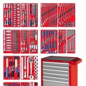 Комплектация1/2" Головки и принадлежности (28 предметов); 3/8" Головки и принадлежности (22 предмета); 1/4" Головки и принадлежности (45 предметов); Ключи комбинированные (20 предметов); Ключи накидные (12 предметов); Глубокие 6-гранные головки (12 предметов); Вставки (биты) (40 предметов); Спецголовки и насадки (28 предметов); Набор демонтажный (24 предмета); Отвёртки, ключи L-типа, магнит (28 предметов); Ключи трещоточные (11 предметов); Ударно-режущий инструмент (10 предметов); 3/4" Головки и принадлежности (13 предметов); Шарнирно-губцевый инструмент (6 предметов); Съёмники стопорных колец (4 предмета); 1/2" Головки и принадлежности ударные (16 предметов)