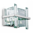 Бра стиля модерн для гостиной, кабинета или спальни имеет размеры 246x240x170 мм. Арматура светильника окрашена в хромовый цвет. Лампы в комплекте - отсутствуют. В светильнике применяются лампы накаливания или светодиодная LED-лампа. Цвет плафонов - неокрашенный, с прозрачной поверхностью. Материал плафонов - стекло. Класс электробезопасности - I, степень пылевлагозащиты (IP) - 20. Максимальная мощность лампы (Вт) - 40. Светильник размещается на стене.