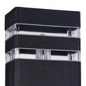 Накладной светильник стиля модерн для улицы имеет размеры 110х207x65 мм. Арматура светильника окрашена в черный цвет. Лампы в комплекте - отсутствуют. В светильнике применяются лампы накаливания или светодиодная LED-лампа. Цвет плафонов - неокрашенный, черный, с матовой, прозрачной, рельефной поверхностью. Материал плафонов - металл, стекло. Класс электробезопасности - I, степень пылевлагозащиты (IP) - 54. Максимальная мощность лампы (Вт) - 60. Светильник размещается на стене.
