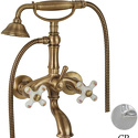Назначение: ванна+душ • Конструкция: двухрычажный • Монтаж: вертикальный • Клапан: керамический • Материал: латунь, покрытие - бронза • Подводка: жесткая • Монтажные отверстия: 2 отверстия • Форма излива: традиционная • Душевая лейка в комплекте: есть • Держатель для душевой лейки: на смесителе • Донный клапан в комплекте: есть