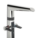 Назначение: кухонный • Конструкция: двухрычажный • Монтаж: горизонтальный • Материал: покрытие - хром • Подводка: гибкая • Монтажные отверстия: 1 отверстие • Форма излива: традиционная • Термостат: есть • Душевая лейка в комплекте: нет • Аэратор: есть • Донный клапан в комплекте: есть