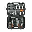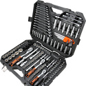 КомплектацияГоловки торцевые шестигранные 1/4:13шт.Головки торцевые шестигранные глубокие 1/4:6шт.Головки торцевые шестигранные E-STAR 1/4:5шт.Адаптер-переходник 1/4:2шт.Шарнир карданный 1/4Удлинитель 1/4:2шт.Рукоятка-переходник для вставок-бит 1/4Биты:10шт.Набор вставок-бит:20шт.Рукоятка трещоточная 1/4, 72 зубцаГоловки торцевые шестигранные 3/8:11шт.Головки торцевые шестигранные глубокие 3/8:6шт.Головки торцевые шестигранные E-STAR 3/8:6шт.Головки свечные 3/8:2шт.Рукоятка трещоточная 3/8, 72 зубцаШарнир карданный 3/8Удлинитель 3/8:2шт.Головки торцевые шестигранные 1/2:17шт.Головки торцевые шестигранные глубокие 1/2:6шт.Головки торцевые шестигранные E-STAR 1/2:3шт.Рукоятка трещоточная 1/2, 72 зубцаШарнир карданный 1/2Удлинитель 1/2:2шт.Адаптер-переходник 1/2Шестигранные ключи:9шт.Головки торцевые шестигранные ударные 1/2:4шт.Комбинированный ключ:12шт.Ключ с трещоточным механизмом:3шт.Кейс пластиковый
