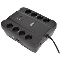 Интерактивный, 850 ВА / 510 Вт, количество выходных разъемов: 8 (4 с питанием от батареи), USB, защита локальной сети, защита телефонной линии