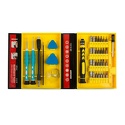 Комплектация- 2 отвертки особого предназначения : iPhone, Android; - 2 пластмассовых медиатора, для вскрытия корпусов/экранов - Присоска для снятия экрана- Булавка для открытия слотов сим/карт памяти- Гибкий удлинитель- Пинцет- Удлинитель- Отвертка - Биты и головки 28 шт Головки: PH2, М2.5, М3, М3.5, М4, М4.5, М5, М5.5Биты:Т3, Т4, Т5, Т6, Т7H 0.9, H 1.5, H 2.0, H 3.0SL 1.0, SL 2.0PH1, PH1.5, PHPH2, PH3,5U2.6▲ 2.0Υ 2.0ʘ 0,8Pentalobe 0,8