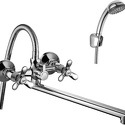 Длина излива - 320, Комплектация - Держатель душевой лейки, душевой шланг, ручной душ, Тип - Двухзахватный, Встраиваемый - Нет, Назначение - Для ванны и душа, Количество монтажных отверстий - 2, Материал корпуса - Латунь, Покрытие - Хром, Термостат - Нет, Аэратор - Есть, Присоединительный размер - 1\2", Высота - 10.4, Форма излива - Традиционная, S-образные эксцентрики - Есть, Тип подводки - Жесткая, Цвет - Серебристый, Ширина - 22.1, Поворотный излив - Да, Донный клапан - Нет, Глубина - 12.15