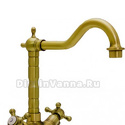 Назначение: кухонный • Конструкция: двухрычажный • Монтаж: горизонтальный • Материал: латунь, покрытие - золото • Подводка: гибкая • Монтажные отверстия: 1 отверстие • Форма излива: традиционная • Душевая лейка в комплекте: нет • Аэратор: есть